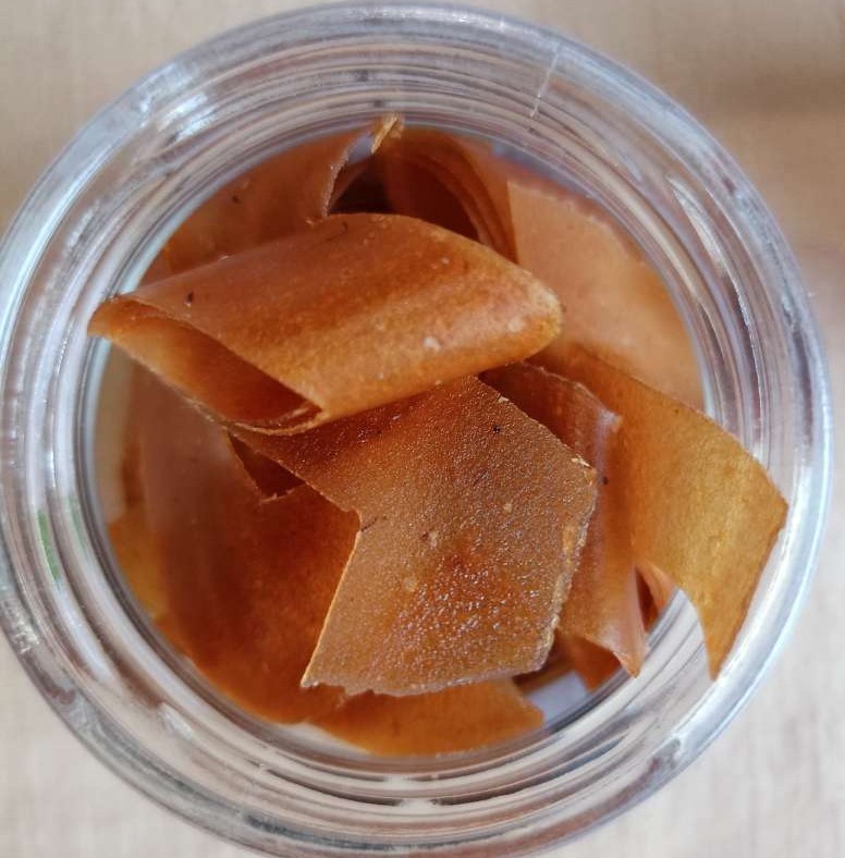 Découvrez ce cuir de fruit artisanal, réalisé à partir de pommes cultivées dans le Loiret et de jus de citron, lentement séché pour révéler toute la richesse du fruit.